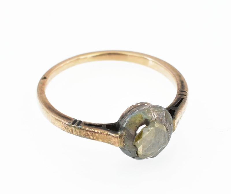 Arany (Au) 14 gyűrű nagy méretű (8mm) régi csiszolású gyémánttal, méret: 55, br: 2,54 g