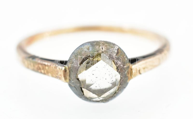 Arany (Au) 14 gyűrű nagy méretű (8mm) régi csiszolású gyémánttal, mére...