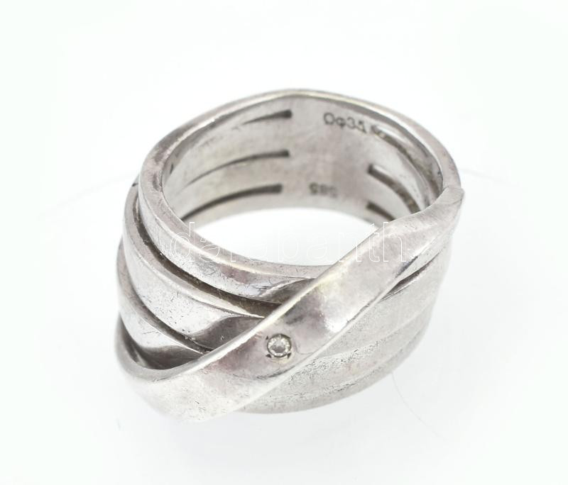 Arany (Au) 14K gyűrű 0,02 ct gyémánttal, jelzett, méret: 50, bruttó: 8,9 g