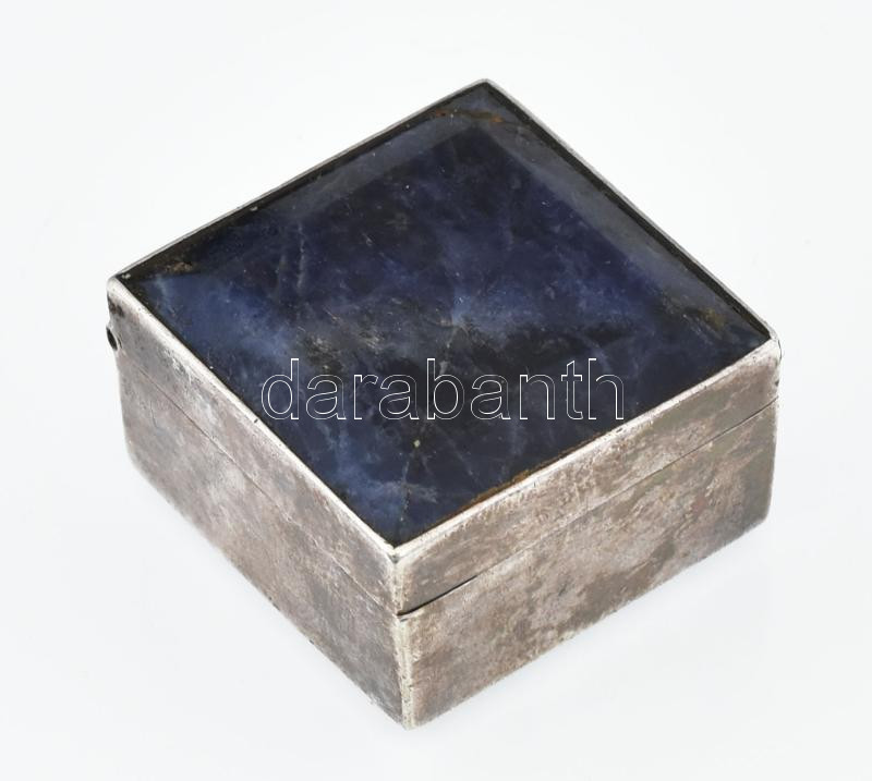 Ezüst (Ag) gyógyszeres dobozka köves tetővel, jelzett br 15,5 g 2,5x2,...