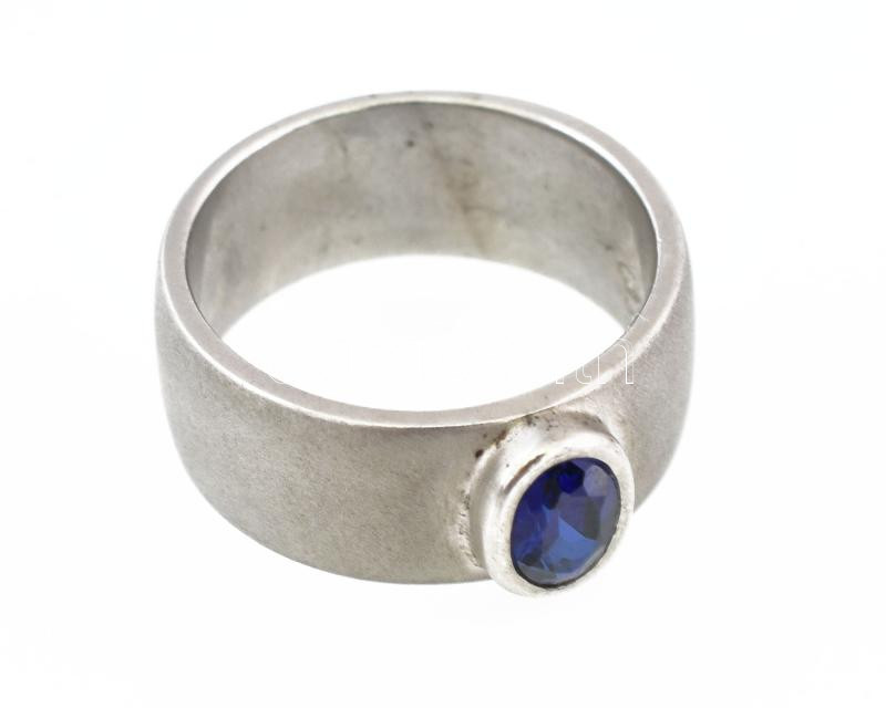 Ezüst(Ag) gyűrű kék kővel, jelzett, méret: 60, bruttó: 10,6 g