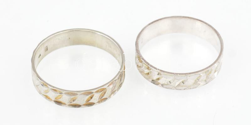 Ezüst(Ag) mintás jegygyűrűpár, jelzett, méret: 59, 62, nettó: 4,4 g