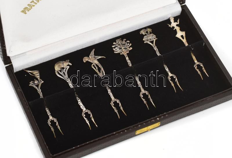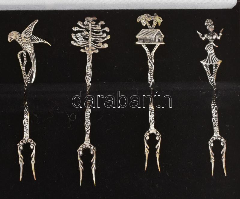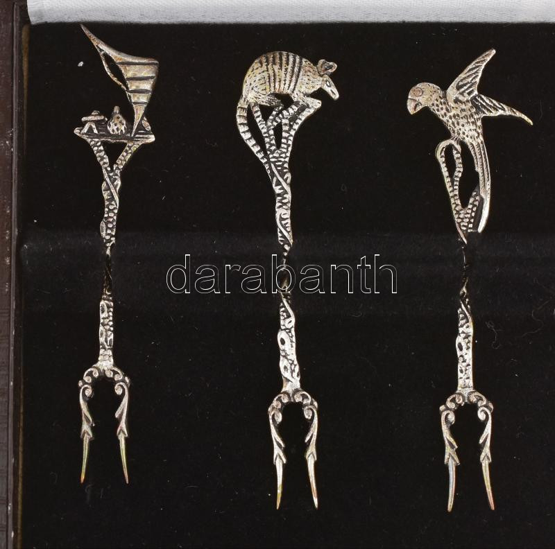 Ezüst(Ag) olívabogyó tálaló villa, 6 db, jelzett, nettó: 27 g