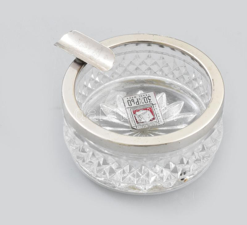 Olasz kristály hamuzó ezüst (Ag) szerelékkel, jelzéssel, d: 6 cm