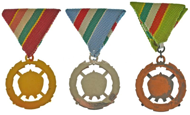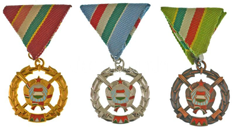 1979. "Fegyverbarátságért Érdemérem" arany, ezüst és bronz fokozata, zománcozott, aranyozott, ezüstözött és bronz kitüntetések mellszalagon T:UNC Hungary 1979. "Medal for Weapon Friendship" Golden, Silver and Bronze Grade" enamelled, gold plated, silver plated and bronze decorations with ribbons C:UNC NMK.: 717., 718., 719.