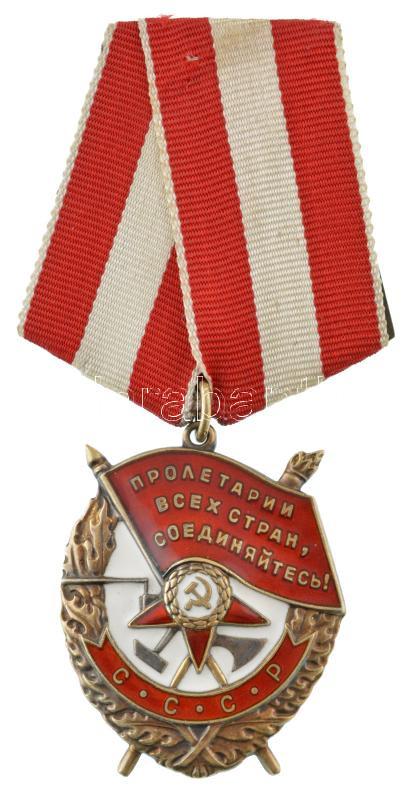 Szovjetunió ~1944. "Vörös Zászló érdemrend" zománcozott Ag kitüntetés ... https://www.darabanth.com/en/450-Online-auction/450.0/Numismatics/Military~2000017/Szovjetunio-7E1944-Voros-Zaszlo-erdemrend-zomancozott-Ag-kituntetes-eredeti-mellszalaggal~II2986672