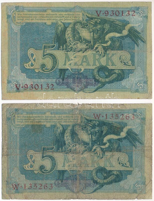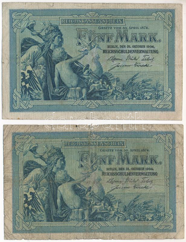 Német Birodalom 1904. 5M hat számjegyű sorszám (2x) T:VG,G German Empi...