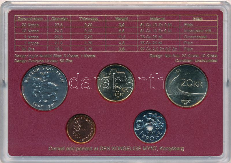 https://www.darabanth.com/en/450-Online-auction/450.0/Numismatics/Worldwide-silver-and-metal-coins~2000014/Norvegia-1997-50o-20K-5xklf-forgalmi-sor-plasztiktokban-TUNC-Norway-1997-50-Ore-20-Kroner~II2987197