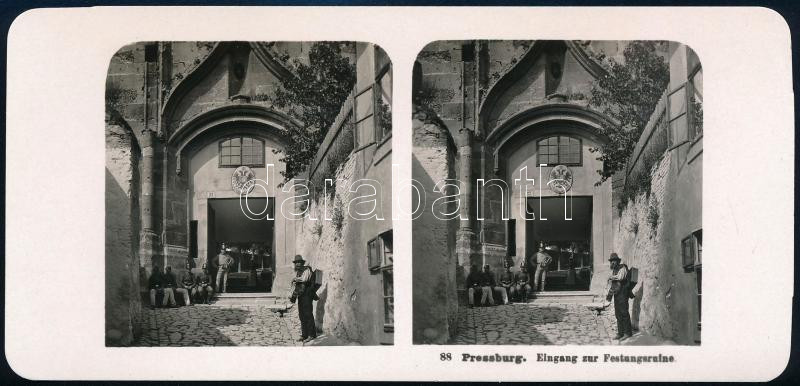 1904 Pressburg / Pozsony, bejárat a várba, sztereofotó, 9×18 cm