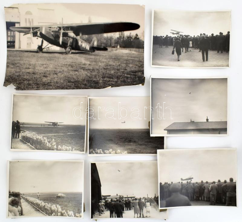 1932 A Mátyásföldi reptéren készült 8 db érdekes fotó: repülőgépek, cs...