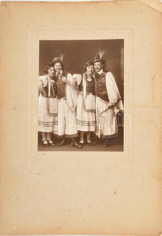 1935 Népviseletbe öltözött színészek, kartonra kasírozott fotó, 14x10,...
