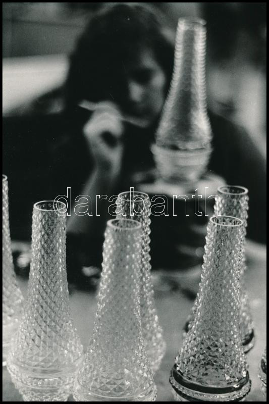 Description: 1978 Kriss Géza (?-?) budapesti fotóművész aláírt vintage fotóművészeti alkotása (Salgótarján, üvegcsiszoló műhely), ezüst zselatinos fotópapíron, 23,9x16 cm