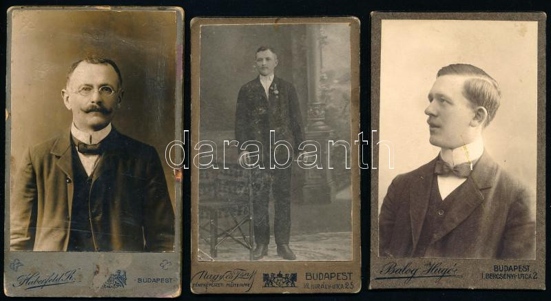 cca 1900-1910 Férfiportrék, 3 db keményhátú vizitkártya, különböző bud... https://www.darabanth.com/en/450-Online-auction/450.0/Photography/Photo~500017/cca-1900-1910-Ferfiportrek-3-db-kemenyhatu-vizitkartya-kulonbozo-budapesti-mutermekbol~II2992640