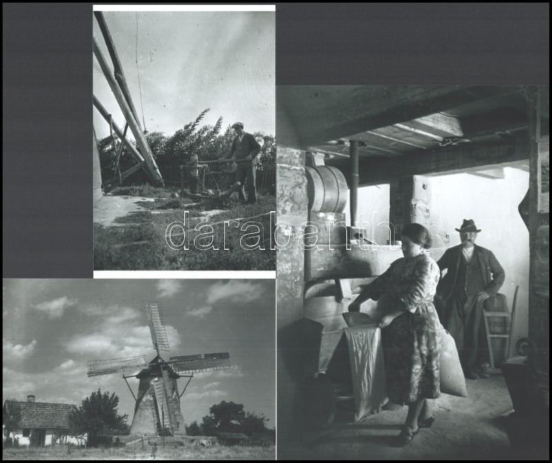 Description: cca 1932 A szélmolnár és a felesége, + további két kép az alföldi szélmalomról, Kerny István (1879-1963) budapesti fotóművész hagyatékából 3 db modern nagyítás, 21x15 cm és 10x15 cm