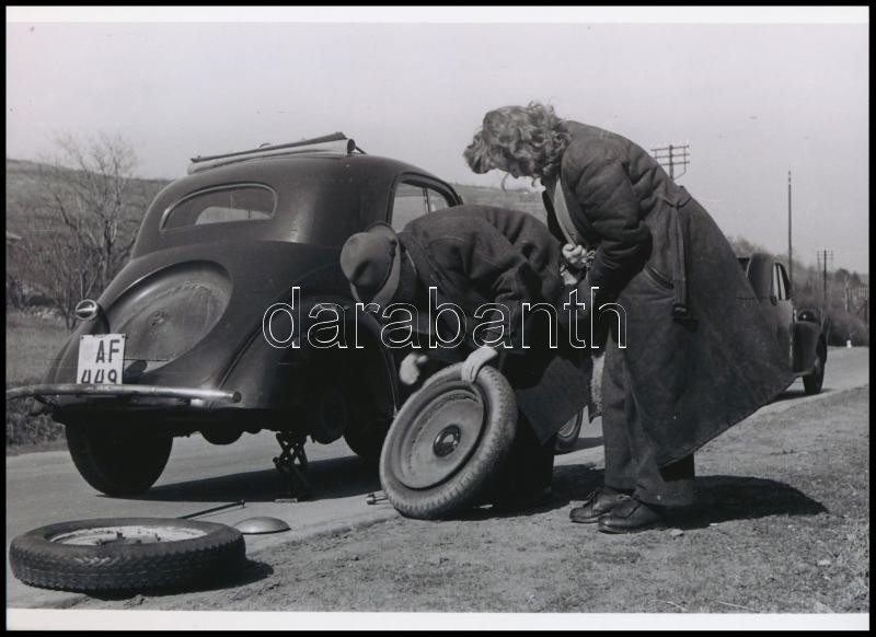 cca 1959 Kotnyek Antal (1921-1990) budapesti fotóriporter hagyatékából 1 db modern nagyítás (Kerékcsere), jelzés nélkül, 15x24 cm