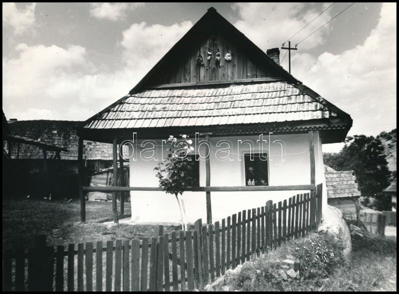 cca 1975 Vigovszky István esztergomi fotóművész feliratozott vintage fotóművészeti alkotása (Palóc ház), ezüst zselatinos fotópapíron, 18x24 cm