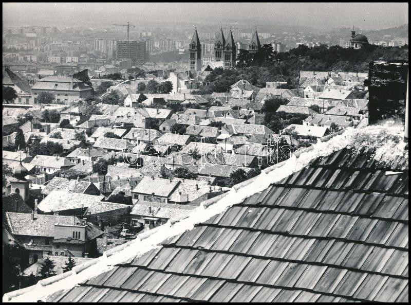 cca 1977 Barabás József aláírt vintage fotóművészeti alkotása (Pécsi háztetők), ezüst zselatinos fotópapíron, 18x24 cm