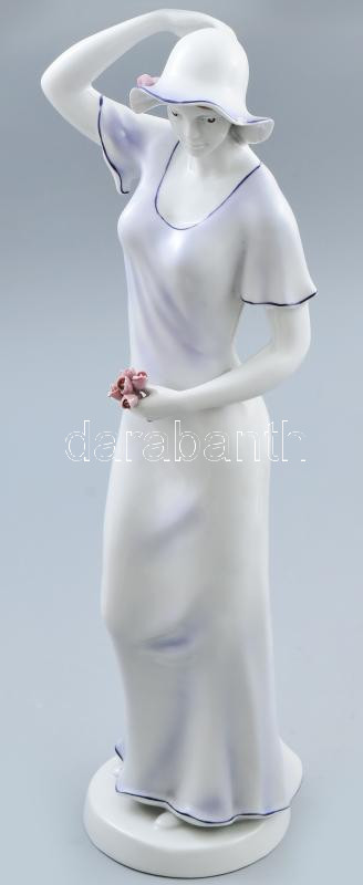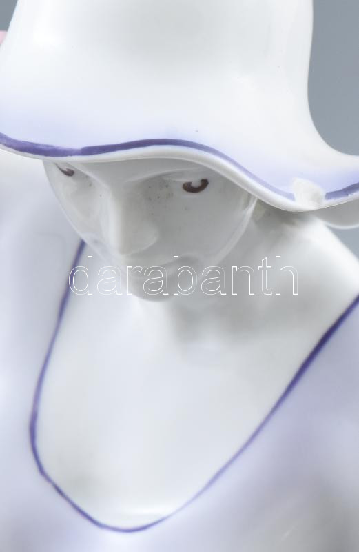 Hollóházi kalapos hölgy, kézzel festett, jelzett, kalapján pattanással, m: 41,5 cm