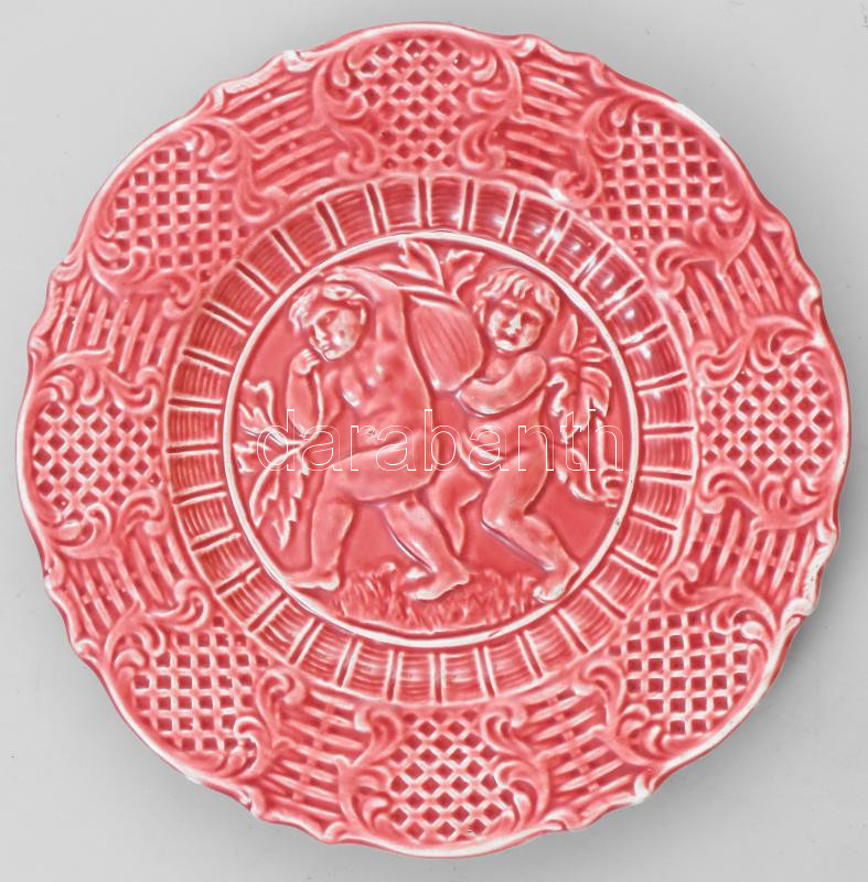 Kerubok mintás szecessziós fajansz falitál, masszába nyomott számozáss...