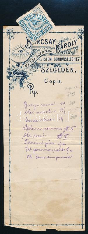 cca 1920-1940 Szeged, Barcsay Károly gyógyszertára az Isteni gondvisel... https://www.darabanth.com/en/451-Online-auction/451.0/Art-and-other-collectibles/Advertisement~500026/cca-1920-1940-Szeged-Barcsay-Karoly-gyogyszertara-az-Isteni-gondviseleshez-fejleces-papirra-~II2998951