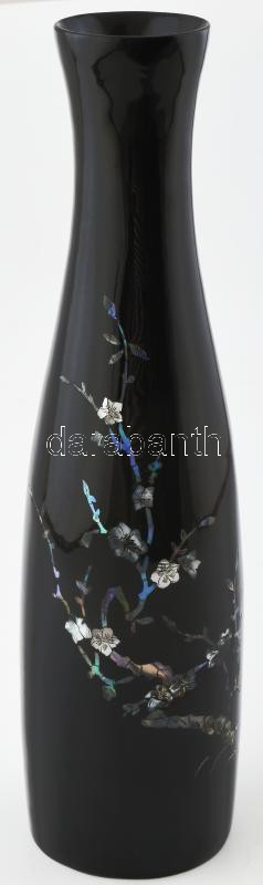 Gyönygház berakásos lakk fa váza, hibátlan 35 cm