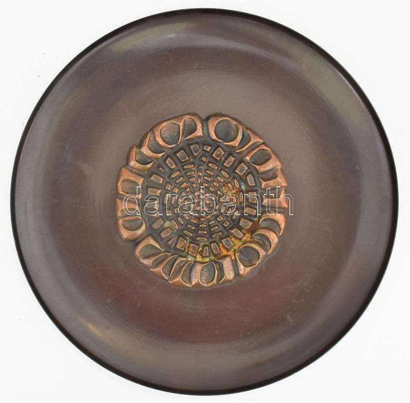Réz iparművész dísztál plasztikus díszítéssel d: 24 cm
