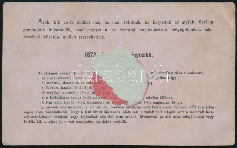 1881 Nyitra, vadászati jegy