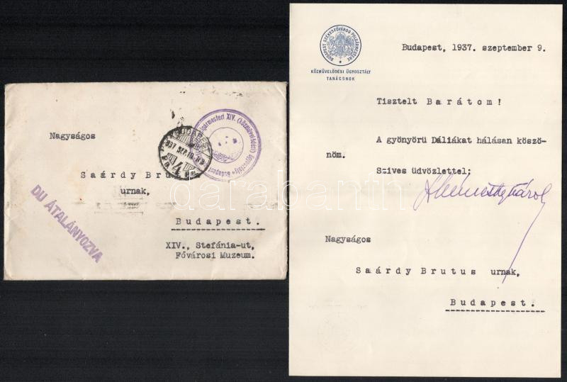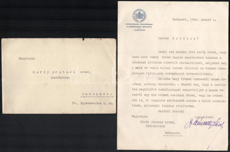 1935-1937-1940 Dr. Németh Károly (1890-1949) jogász székesfővárosi tanácsnok 4 db levele Sárdy Brutus (1892-1970) festőművész, restaurátor részére