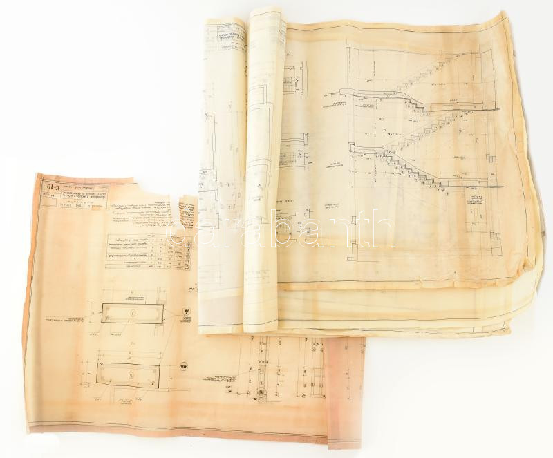 cca 1960 Tápiószecső három lakásos lakóház, orvosi rendelő és gyógyszertár eredeti tervrajzai 10 db terv pausz papíron. Nagykátai tervezővállalat 82x60 cm Egyen szakadások