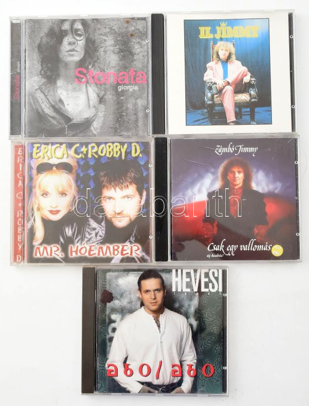 5 db CD: Hevesi Tamás, Erica C. + Robby D., Stonata és Zámbó Jimmy (a lemezek VG, illetve VG+ állapotban vannak)