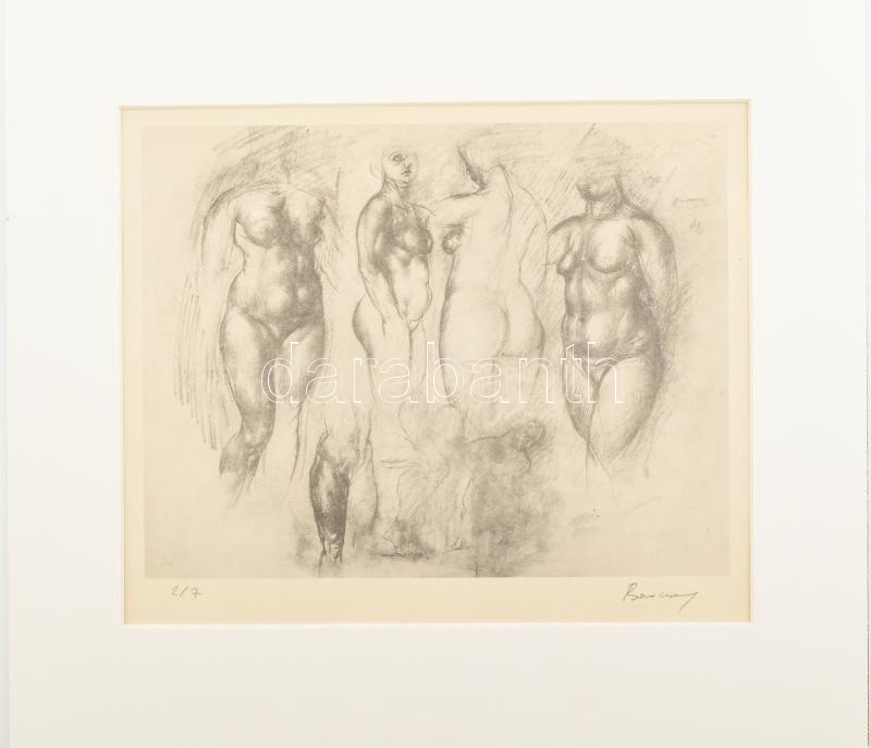 Barcsay jelzéssel: Aktok, nyomat, papír, paszpartuban, 20×26 cm