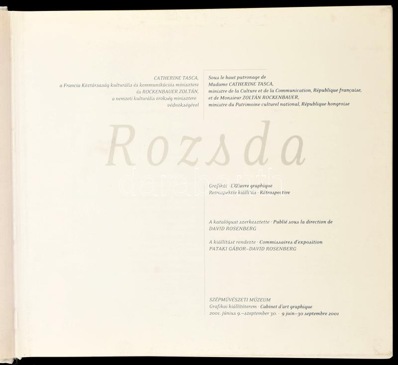 Rozsda. Rozsda Endre grafikái. Retrospektív kiállítás. Szerk.: David Rosenberg. Bp., 2001. Szépművészeti Múzeum. Gazdag képanyaggal, Rozsda Endre munkáival illusztrált. Kiadói kartonált papírkötés.