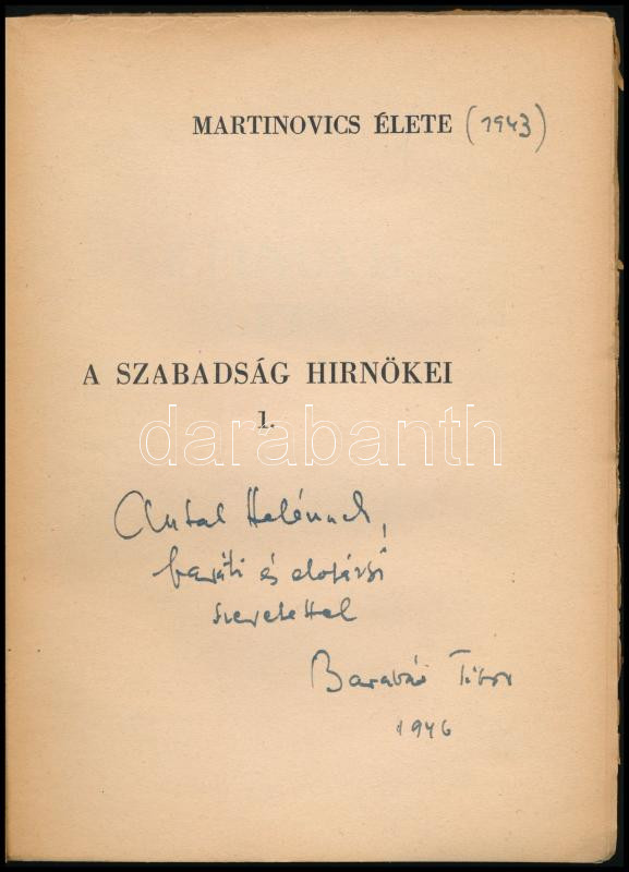 Barabás Tibor: Martinovics élete. Bp., 1945, Cserépfalvi. A szerző, Ba... https://www.darabanth.com/en/451-Online-auction/451.0/Books/Books-History~1000011/Barabas-Tibor-Martinovics-elete-Bp-1945-Cserepfalvi-A-szerzo-Barabas-Tibor-1911-1984-K~II3002332