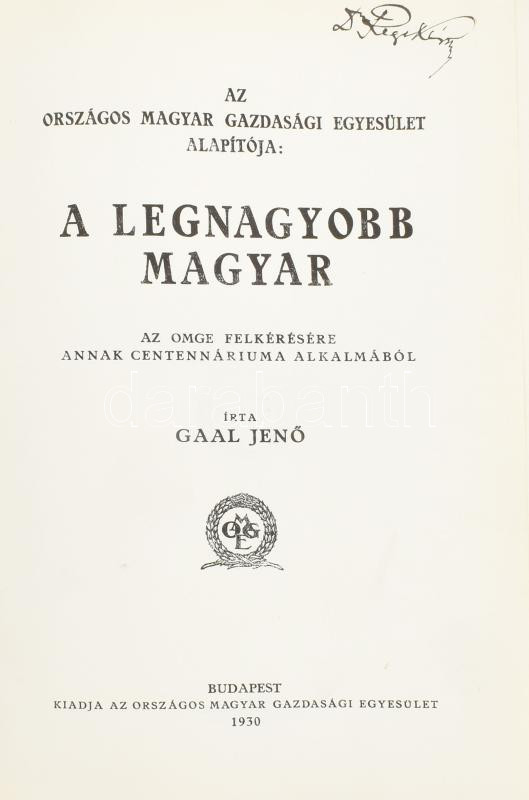 Gaal Jenő: A legnagyobb magyar. Bp., 1930, Országos Magyar Gazdasági E... https://www.darabanth.com/en/451-Online-auction/451.0/Books/Books-History~1000011/Gaal-Jeno-A-legnagyobb-magyar-Bp-1930-Orszagos-Magyar-Gazdasagi-Egyesulet-Kiadoi-egeszvC3~II2952369