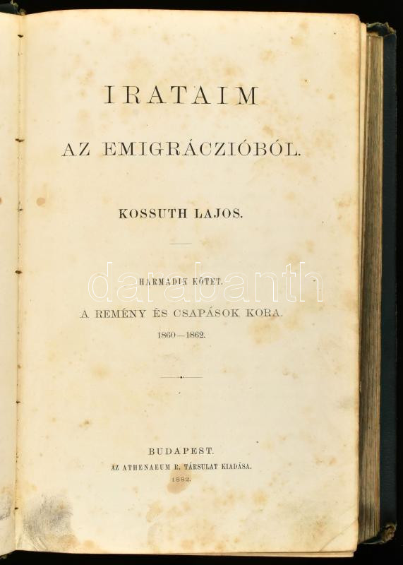 Kossuth Lajos: Irataim az emigcárczióból. III. kötet: A remény és csap... https://www.darabanth.com/en/451-Online-auction/451.0/Books/Books-History~1000011/Kossuth-Lajos-Irataim-az-emigcarcziobol-III-kotet-A-remeny-es-csapasok-kora-Bp-1882-A~II2974902