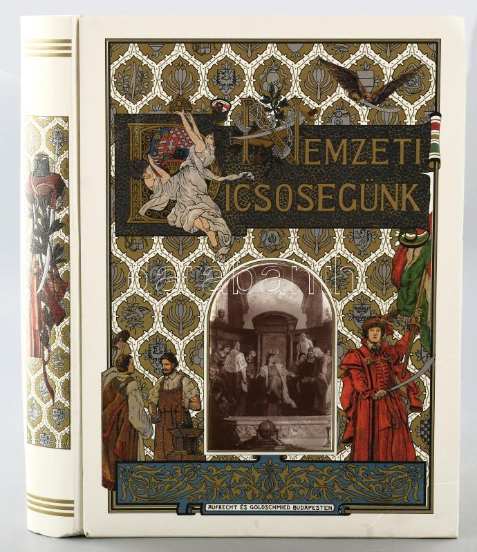 Description: Nemzeti Dicsőségünk. Szerk. Hock János. Budapest, é.n., Facsimile-ex Kiadó. Képekkel gazdagon illusztrált. Kiadói festett, dombornyomott, illusztrált műbőrkötés vászon képpel. Reprint kiadás, 1898-ban kiadott Nemzeti Dicsőségünk c. könyv hasonmás kiadványa. Számozott (2500/1332.) példány Szép állapotban