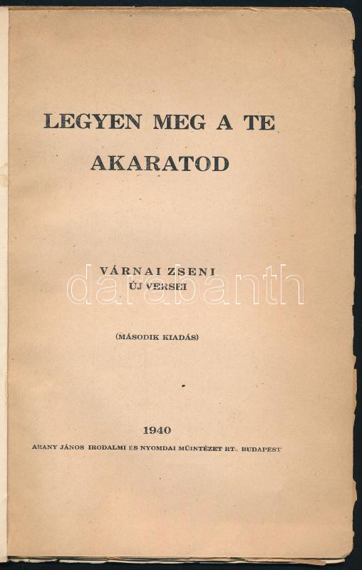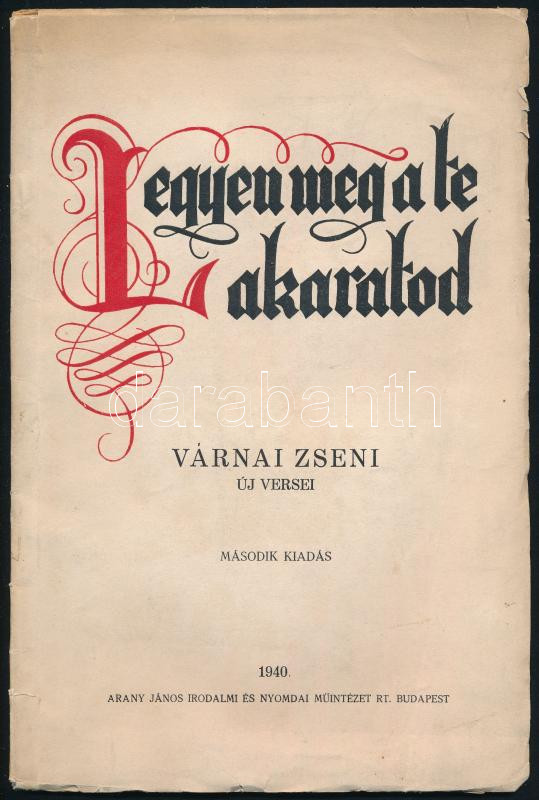 https://www.darabanth.com/en/451-Online-auction/451.0/Books/Books-Other-rarities~1000029/Varnai-Zseni-Legyen-meg-a-te-akaratod-Bp-1939-Arany-Janos-Irodalmi-es-Nyomdai-Muintezet-K~II3001517