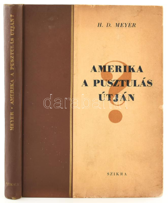 Meyer, H. D.: Amerika a pusztulás útján? Ford.: Halász Zoltán. Bp., 1950, Szikra, 247+(1) p. Kiadói félvászon-kötés, minimálisan sérült borítóval.