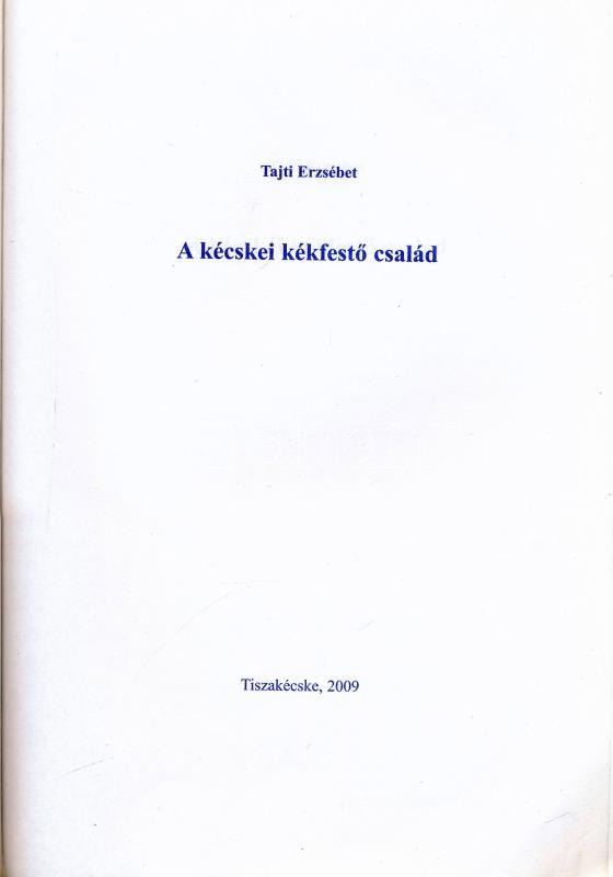https://www.darabanth.com/en/451-Online-auction/451.0/Books/Books-Social-sciences~1000020/Tajti-Erzsebet-A-kecskei-kekfesto-csalad-Tiszakecske-2009-Tiszakecskei-Honismereti-Kor-~II2998064