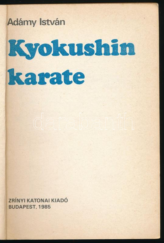 Adámy István: Kyokushin karate. Bp., 1985, Zrínyi Katonai Kiadó. Fekete-fehér és színes fotókkal illusztrált. Kiadói papírkötés, kissé viseltes borítóval.