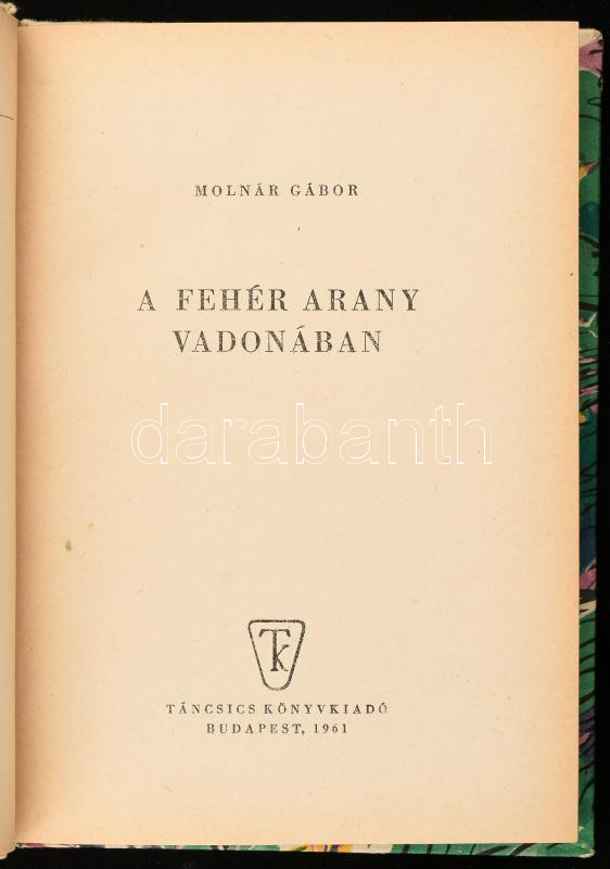 https://www.darabanth.com/en/451-Online-auction/451.0/Books/Books-Travelling-Local-History~1000031/Molnar-Gabor-A-feher-arany-vadonaban-Utikalandok-32-Bp-1961-Tancsics-Kiadoi-kartonalt~II2997150