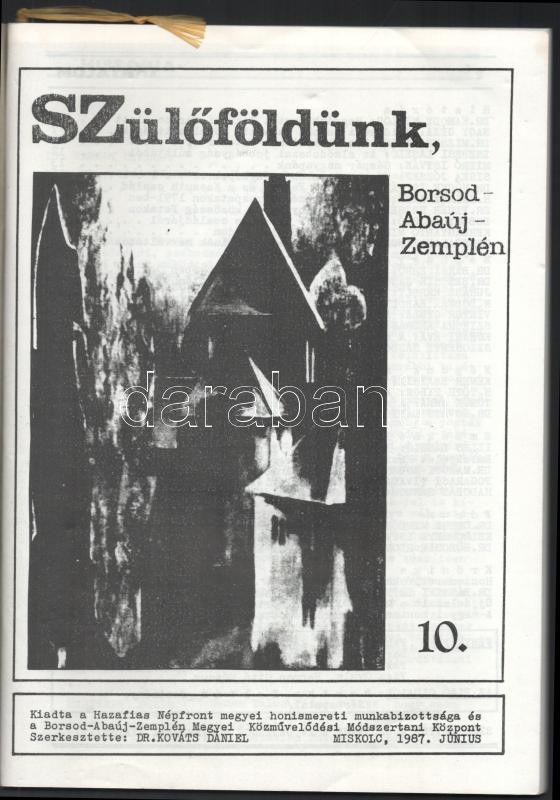 Szülőföldünk, Borsod-Abaúj-Zemplén. A honismereti mozgalom megyei tájékoztatója 10. Szerk.: Dr. Kováts Dániel. Miskolc, 1987, Hazafias Népfront megyei honismereti munkabizottsága - Borsod-Abaúj-Zemplén Megyei Közművelődési Módszertani Központ, 96 p. Fekete-fehér képekkel illusztrált. Kiadói tűzött papírkötés.