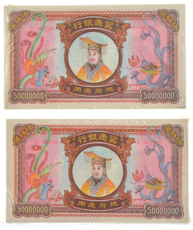 Kína DN Égetési pénz 50.000.000 névértékben (~120-150x) eredeti, kissé sérült csomagolásban (2x) T:UNC,AU