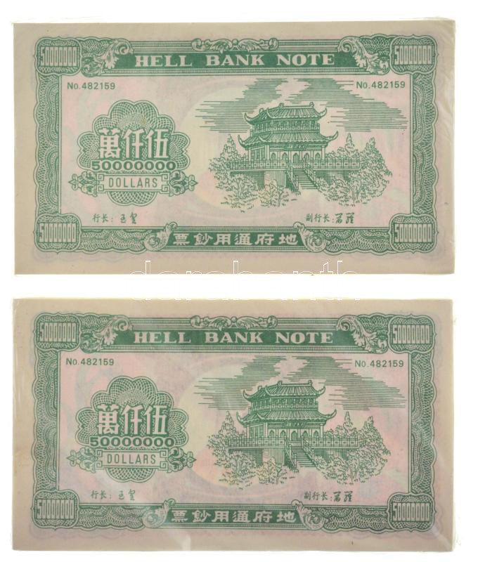 China ND Hell banknotes 50.000.000 (~120-150x) in original, slightly damaged packaging (2x) C:UNC,AU