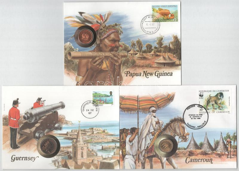5db-os érmés boríték tétel, mind különféle és német nyelvű tájékoztatóval, benne: Pápua Új-Guinea, Guernsey, Kamerun, Oman, Észak-Korea T:UNC,AU