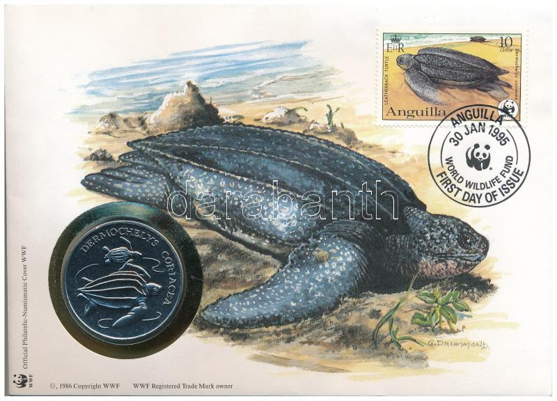 Anguilla DN (1991) "A Világ Vadvédelmi Alap (WWF) 30. évfordulója - Dermochelys Coriacea (Kérgesteknős)" kétoldalas fém emlékérem érmés borítékban, bélyeggel és bélyegzéssel, német nyelvű ismertetővel T:PP