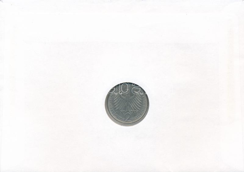 FRG 1970F 2 Mark Cu-Ni "Max Planck" in envelope with stamp and cancellation C:AU small patina