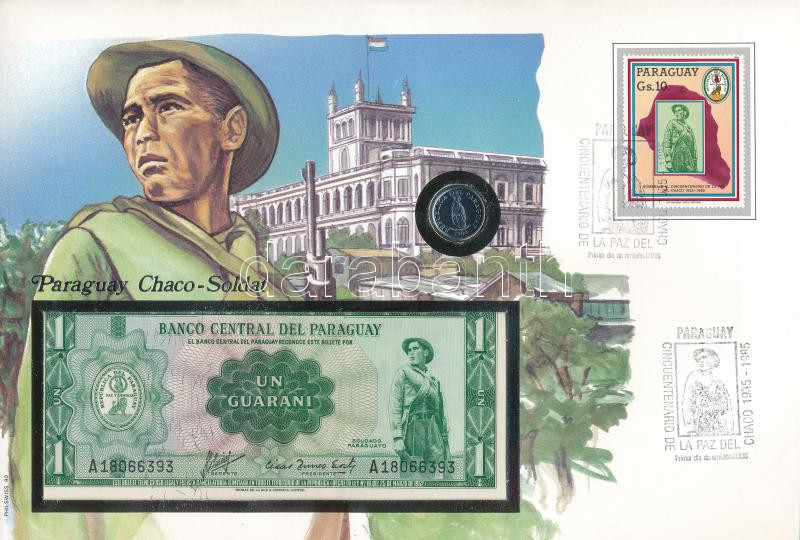 https://www.darabanth.com/en/451-Online-auction/451.0/Numismatics/Envelopes-with-Coins-and-Banknotes~1500004/Paraguay-1984-1G-acel-plus-1952-1G-felbelyegzett-Chaco-katona-ermes-es-bankjegyes-boritekban~II2900439