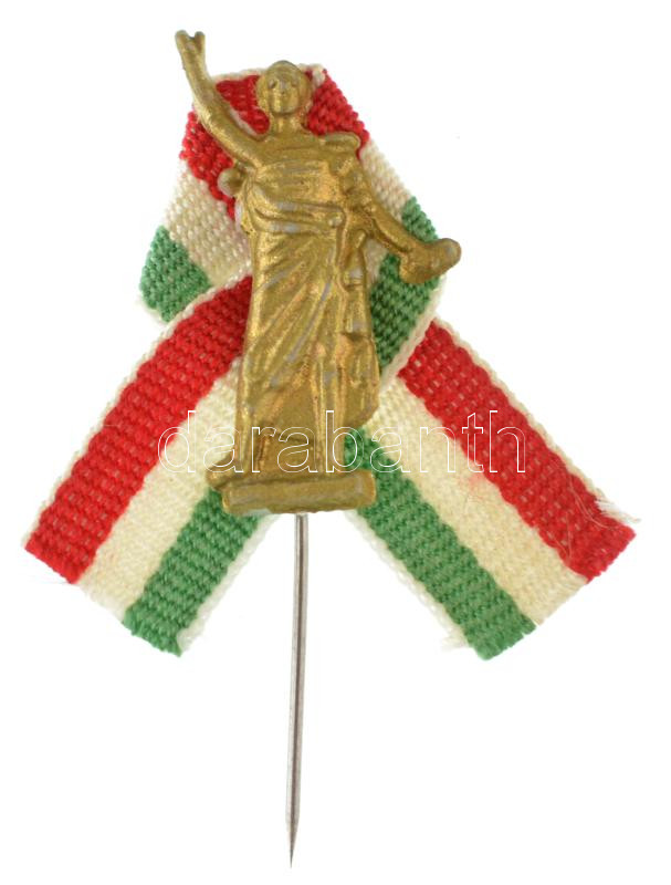 ~1950-1960. "Petőfi Sándor" aranyozott műanyag jelvény trikolor szalaggal (33x29mm) T:AU