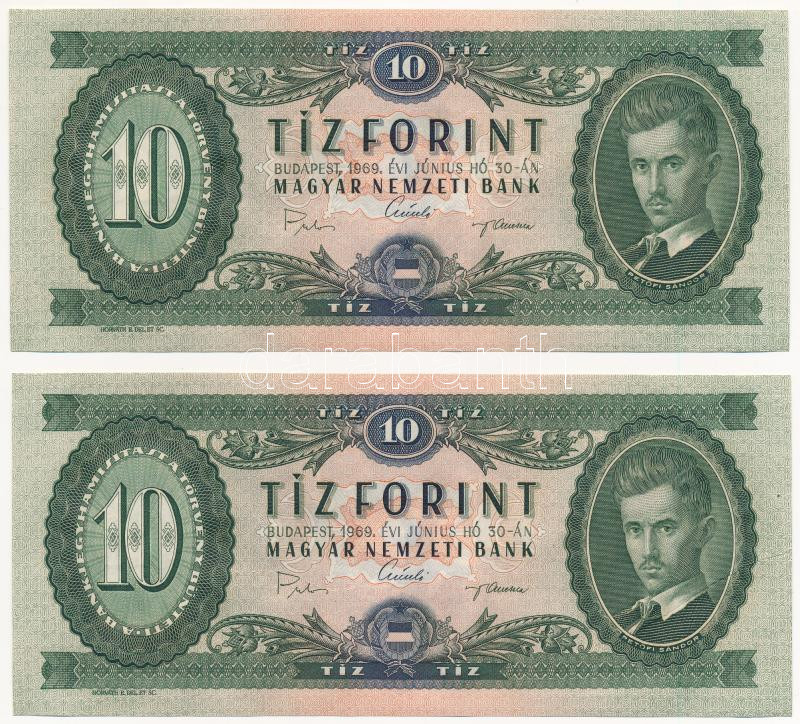 1969. 10Ft (2x) sorszámkövetők "A 767 022529 - A 767 022530"...
